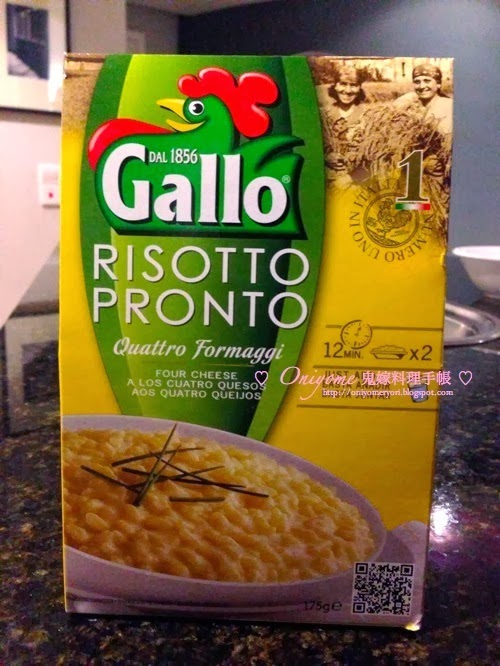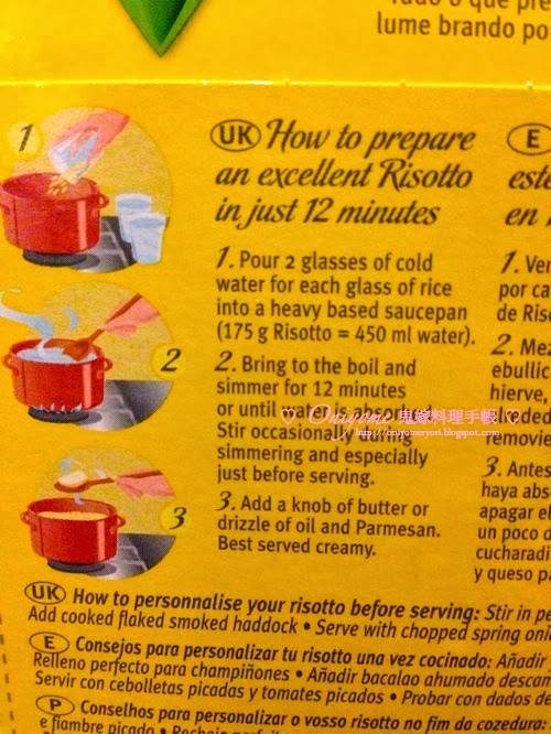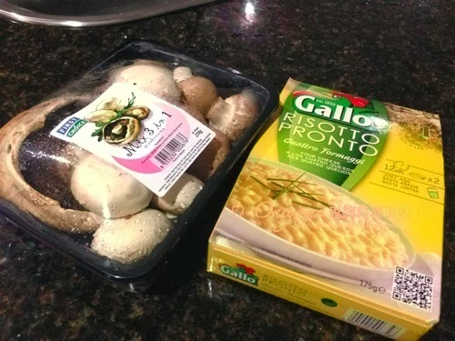 在超市遊來遊去,給我看到這包調好味的即煮意大利米,不用另外買雞湯芝士洋蔥油鹽和配料,一盒攪定,不過鬼嫁想豐富一點,所以買了雜菌,再配芝士味的即煮意大利米,簡簡單單就完成了~