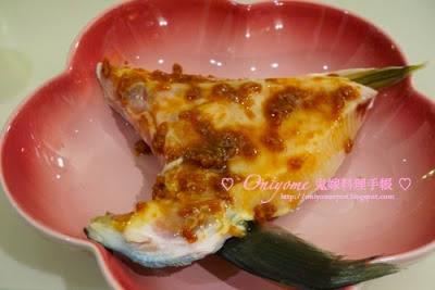 1) 油甘魚頭鮫洗淨抹乾,塗上調味醃10﹣15分鐘,預熱焗爐200度