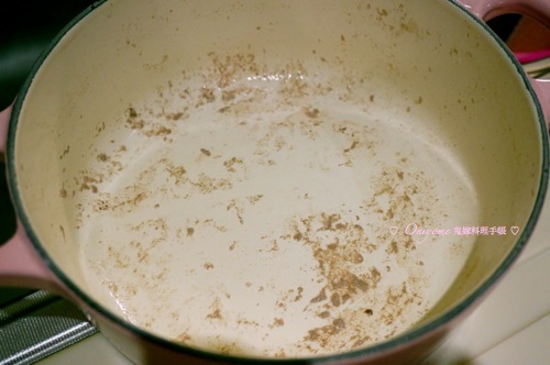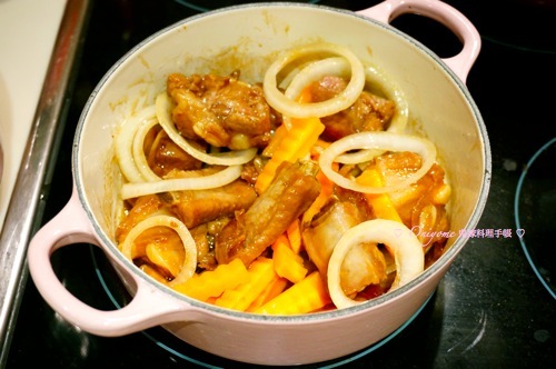 LC 的鍋子比較鎖水,水份較少流失,如用其他鍋子,請視情況加入2-3湯匙水