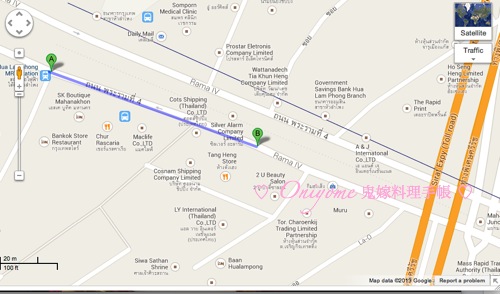 MRT Hua Lamphong Exit 1,沿大馬路,車行反方向走,約5分鐘,非常近!