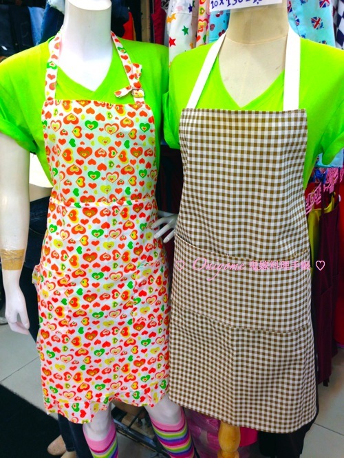 除了布質的,還有這款全膠的,全防水,不怕洗碗時弄濕,但比較重,掛著來做準備工夫,整大餐的話,真的非常累