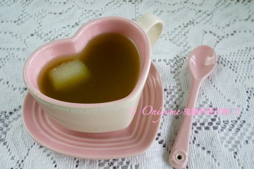 先來個綠茶,噢~  好。味。道。不太吃得出洋蔥味,是淡淡的甜味,感覺不像吃洋蔥,綠茶帶點甜,就像加了點糖的綠茶,只是有點洋蔥的纖維,口感有點不同,但一點都不怪,非常有驚喜。
