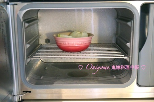 2)放入大碗中,大火蒸20分鐘 (原食譜是把洋葱放入膠袋,再放入大碗,以微波爐600W加熱20分鐘)