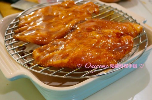1) 沒有焗爐,用煎的方法也可以,放鐵架上焗,醃汁不會浸著食材,烤焗出來會較香口