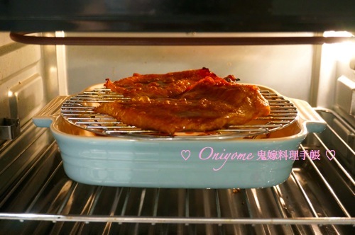 3) 反轉, 焗爐200度焗8分鐘,掃上剩下醃汁, Grill mode 或250度焗3分鐘