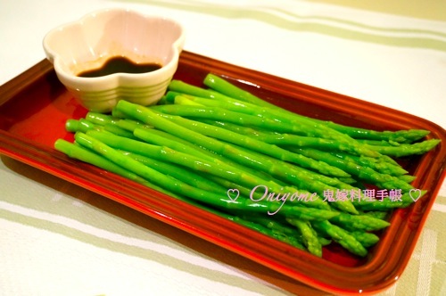今次的題目是「綠露筍」我做了冰鎮的方法,其實非常簡單,只是蒸/灼/煮熟露荀,再過冰水河就完成了,曼谷超級熱,相公愛任何冷或凍的食物,用「冰鎮」美化了「蒸」,令對「蒸」有偏見的相公也另眼相看,沾Wasabi 豉油來吃,露筍扮刺身,又爽又脆,不停說美味~ 美味~