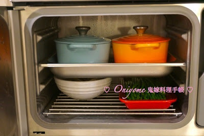 LC焗盤,家裡有大量LC的焗盤 Stoneware, 一直苦無用處,焗爐不常用,焗盤都被投閒置散,蒸爐來了後,焗爐又多一個出路,2人份蒸飯,用心心盤超 Fit! 長隨圓焗盤用來蒸魚,原來可以這麼配! 鍋子更可做燉盎,燉湯蒸飯一樣得!