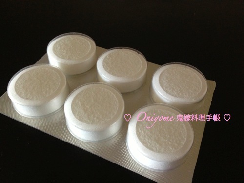 除垢丸長這樣子,各 Miele Counter 有賣,210一盒6粒,買2盒更可電話預訂送貨