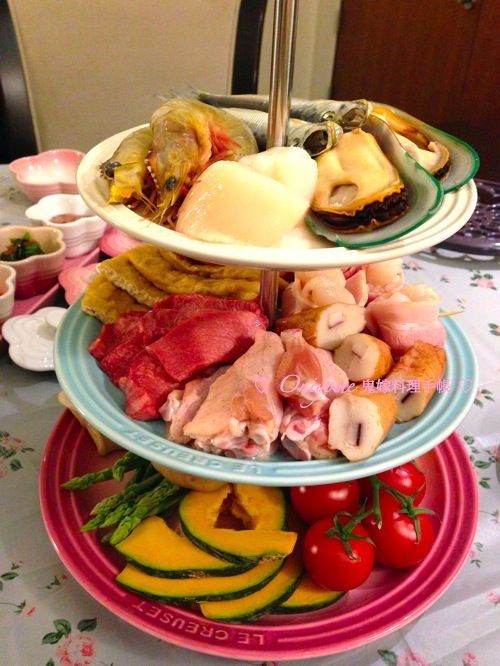 來個高茶燒肉大得寫,除了牛仔骨,所有食材都在蛋糕架上,不但好看,更非常慳位!