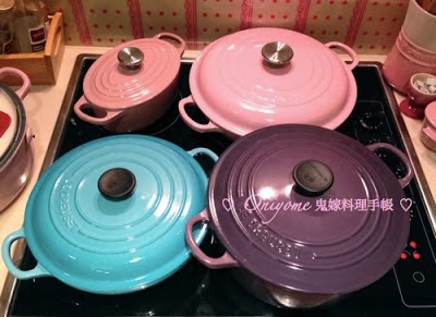 四個爐頭齊開,鍋子有點迫,但看著最愛的粉紅和紫,特別有心機煮飯~