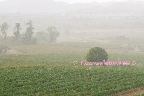 終於下雨了! 有點掃興,但煙雨迷離,又是另一種美態! 葡萄也總要雨水來滋養,我們才有好酒喝吧!