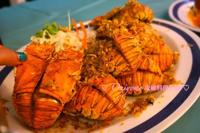 名菜蒜蓉椒鹽琵琶蝦 (Rock Lobster) 龍蝦的親戚,看! 名字中有「Lobster]」啊! 在香港也吃過,啖啖肉,比另一晚吃的龍蝦更鮮甜,肉質更爽口,沒吃過的朋友,一定要試啊! 包你回來多謝我耶~ 2人小份都夠,但擺烏龍要了大份的10隻,一人5隻,超滿足!!