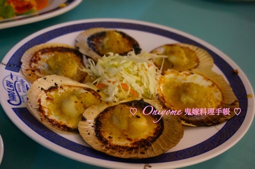 人點我點的蒜蓉焗扇貝,這個在香港街市超易買到的扇貝,我一次也沒見過,只見過急凍的!(能吃嗎?)