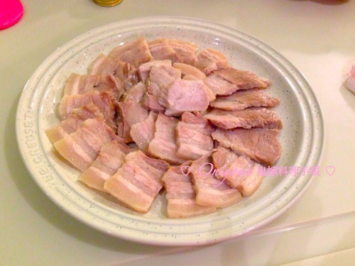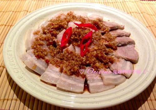 前幾天在日式超市看到非常靚仔的五花腩,打算用來做角煮,但角煮比較花時間,太忙,很晚才開始煮飯, 加上另一道菜是腐乳雞翼,還是配中式料理較好,所以改煮蒜泥白肉,非常簡單,煮好五花腩切薄片,再淋上醬汁便可,汁料都是家常有的東西,隨時想吃,隨時做到,雪涼來吃,又有另一留風味。除了五花腩,用火鍋的豬腩肉薄片也可以,灼熟肉片,淋上醬汁,10分鐘搞定! 因為加了醋和辣椒油,一點肥膩的感覺也沒有,相公一人吃了大半碟!(小心不要變胖子,肥膏還在耶!)
