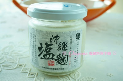 鹽麴成分很簡單,非常天然,只有米麴、鹽和水,混合後再發酵, 可以取代鹽,但鹹度較低、對腎臟負擔小,味道卻更有層次感, 能有效帶出食物的鮮味,用來醃肉,更有神奇效果,可令肉質軟嫩鬆化,肉汁更豐富,連廉價瘦豬都可以裝西班牙黑豚,除了醃肉,加入柚子、橄欖油、胡椒或其他香料,可做成各式各樣沾醬和沙律汁。