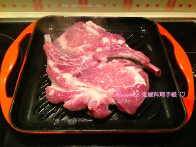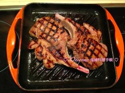 1) 煎豬扒的時間比牛扒長,所以不能長開大火,有可能烤焦,保持 Grill Pan
