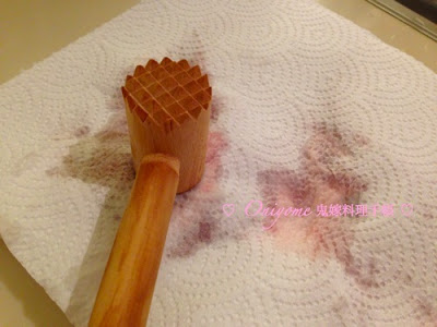1) 豬鞍洗淨抹乾,以鬆肉棒拍打豬鞍令其厚度平均一點,250度焗爐預熱