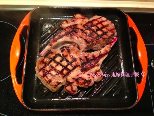 1) 煎豬扒的時間比牛扒長,所以不能長開大火,有可能烤焦,保持 Grill Pan
