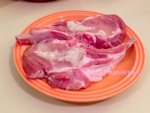 2) 豬鞍混和鹽麴醃過夜,沒時間的話,醃半小時也可