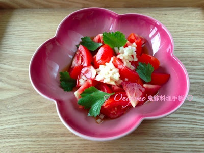 3) 柚子醋混和蕃茄、洋蔥和香芹,入雪櫃雪最少3小時