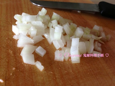 2) 洋蔥切碎