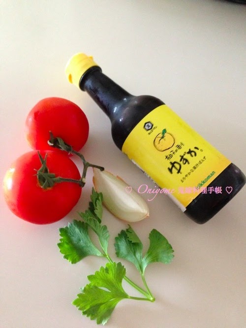 3) 柚子醋混和蕃茄、洋蔥和香芹,入雪櫃雪最少3小時