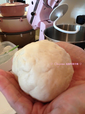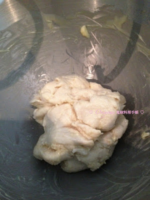 (加了牛油的麵糰,黏黏的,手感好差,不過要忍著,不停打或搓)