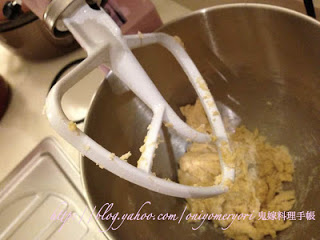 1) 將所有材料倒入攪拌容器,以 flat beater, 用2度攪拌約40秒