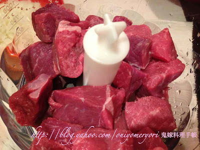 1)把洋蔥、甘荀、蒜蓉、牛肉、紅酒、罐蕃茄粒、 牛湯 、香葉全部加入壓力煲拌勻,蒸汽噴出後,加壓15分鐘便成(相等於1小時)