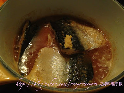 4) 加入鯖魚和薑蓉,滾起轉極小火煮10分鐘(我用LC,所以8分鐘才熄火焗2分鐘)