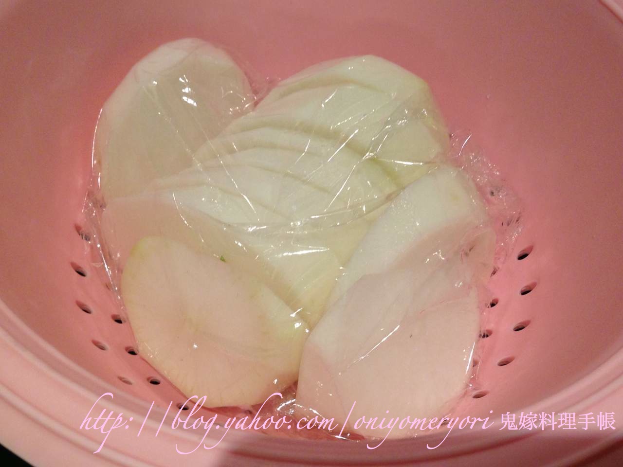 1)白蘿蔔比較難熟,可以保鮮紙包好,微波爐加熱5分鐘,不用滾太久便能吃