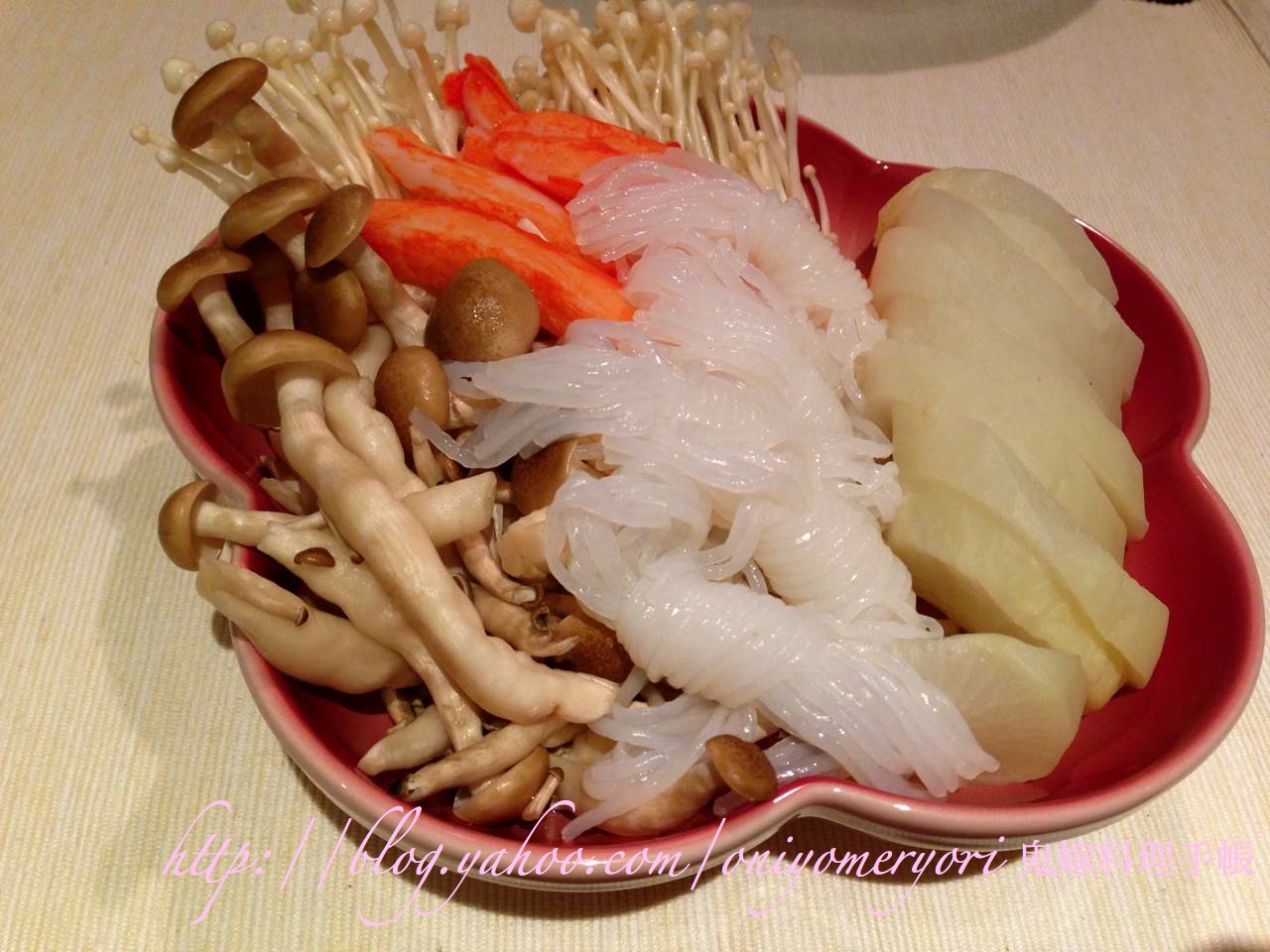各式菇類,白蘿蔔,芋絲,蟹柳