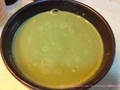 3) 另一小碗,倒入練奶及抹茶粉拌勻
