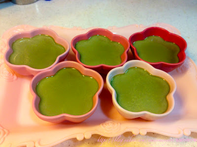 為新的粉紅5小花剪彩,做了鬼嫁家另一人氣甜品,抹茶布丁,抹茶粉是從盛產綠茶的京都宇治買回來的,宇治也是我以前讀書的地方,特別有感情,吃著宇治的布丁,很有回到青春的感覺。這個食譜沒有用糖,只用了練奶,再加北海道3.6牛乳和忌簾,非常濃厚,很難抗拒呢~