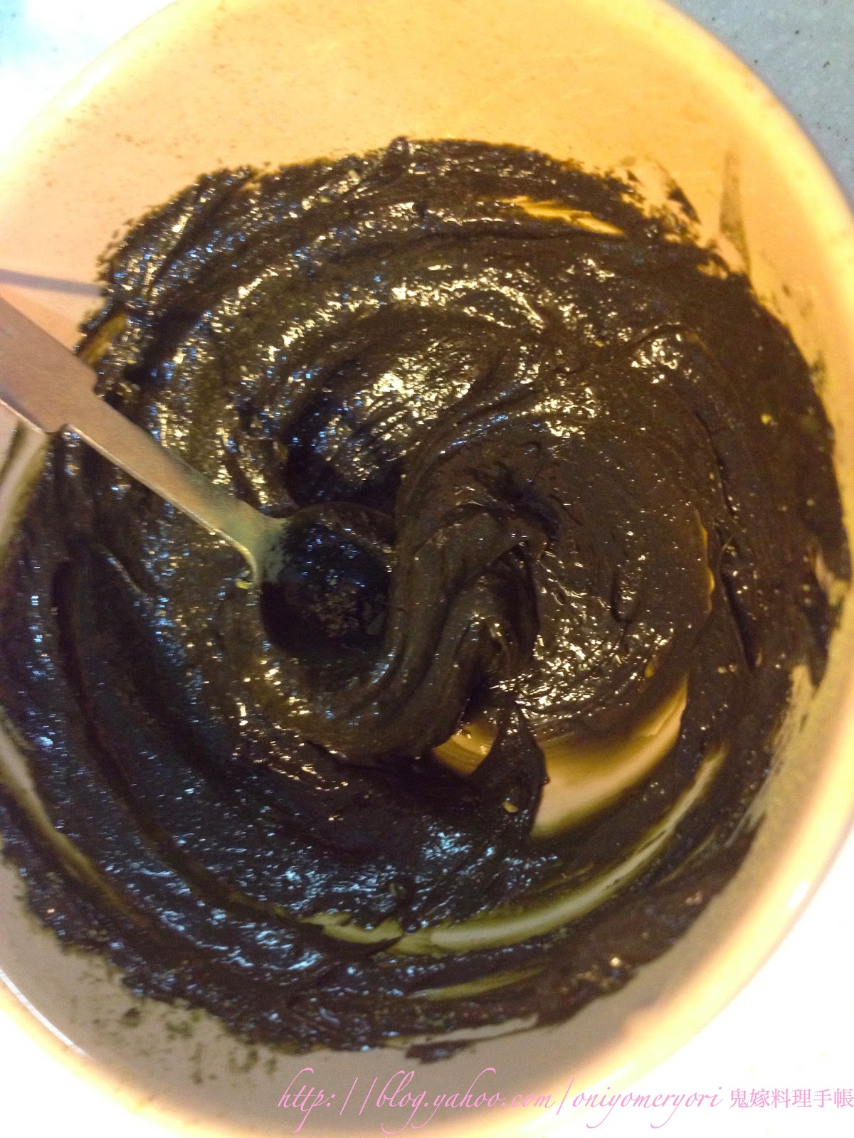 3) 另一小碗,倒入練奶及抹茶粉拌勻