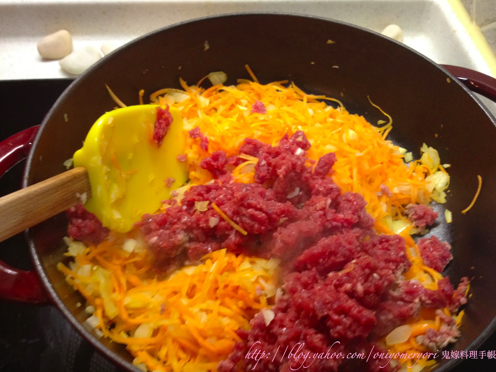 1) 洋蔥及甘荀切粒或用工具刨成碎