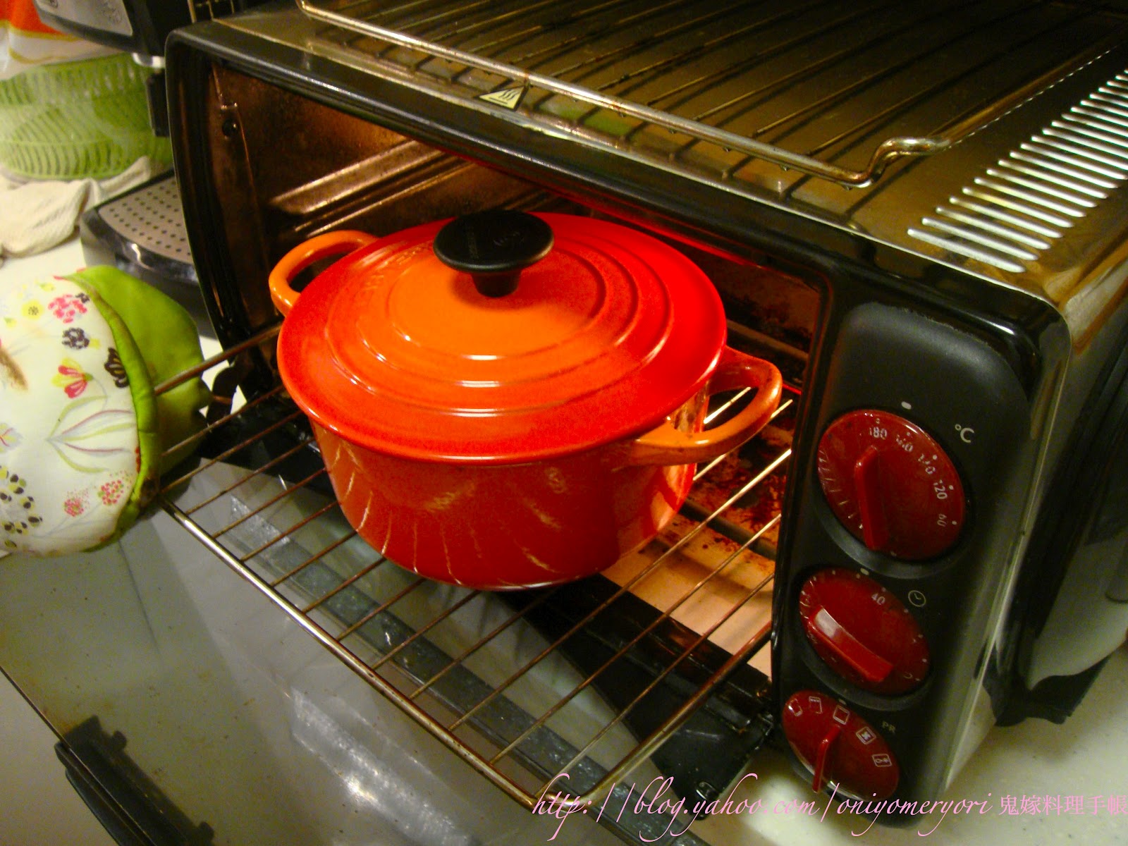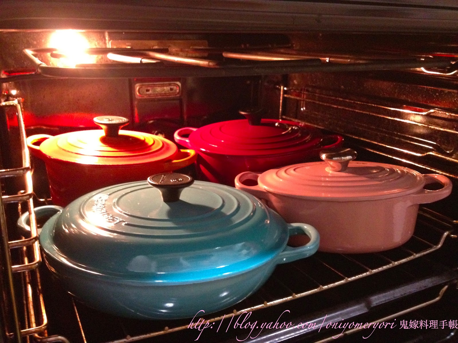 便像在爐頭炆的一樣,當然要用入得焗爐的鍋,如LC,黑色鍋蓋鈕最高是190度, 金屬就沒限制,一次過放了4個。煮好了低溫(30度)放焗爐保溫也可以。