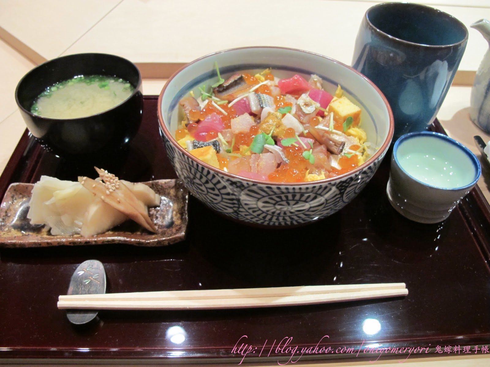 很有風味的壽司小店,只有9位 壽司吧坐位,是新宿數一數二的 壽司 店, 晚市要1萬日元以上一位,太貴了,只試了午市的「雜錦魚生 飯 ﹣ばらちらし」,只是日元1,700,超值! 魚生非常鮮味,顏色鮮艷, 壽司飯粒粒晶瑩,酸甜度與魚生配合得天衣無縫,不能不試,這店一定要訂位,我們白走了一趟,第二次訂了才吃到,午市獨沽一味,只有 雜錦魚生 飯定食,包漬物及味噌湯 !