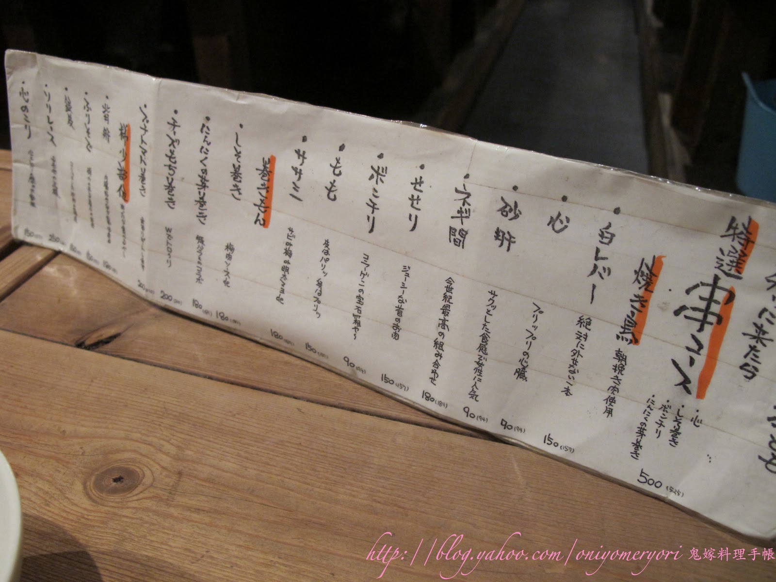 位於下北沢的平民燒鳥店,相公說是他吃過最好的燒鳥,當然比香港的南亭好吃多了,兩個人吃得非常飽,10多串燒了,還有其他小吃,喝了前後共6杯日本清酒,梅酒,燒酒,只是800多港元。除了一般的燒鳥,還吃了比較罕見的部位,例如「心のこり」即心臟與肝臟之間的大動脈,跟普通雞心不一樣,不會太熟,太硬,外脆內軟,味濃似紅肉,很特別,還有「ソリレース」即雞腿與雞身之間的一塊肌肉,一隻雞只有兩塊,非常罕有,被稱為「もも肉の王様」﹣「雞脾之王」,味道更是獨特,雞味濃,嫩滑細緻,有點像煙吞件魚。