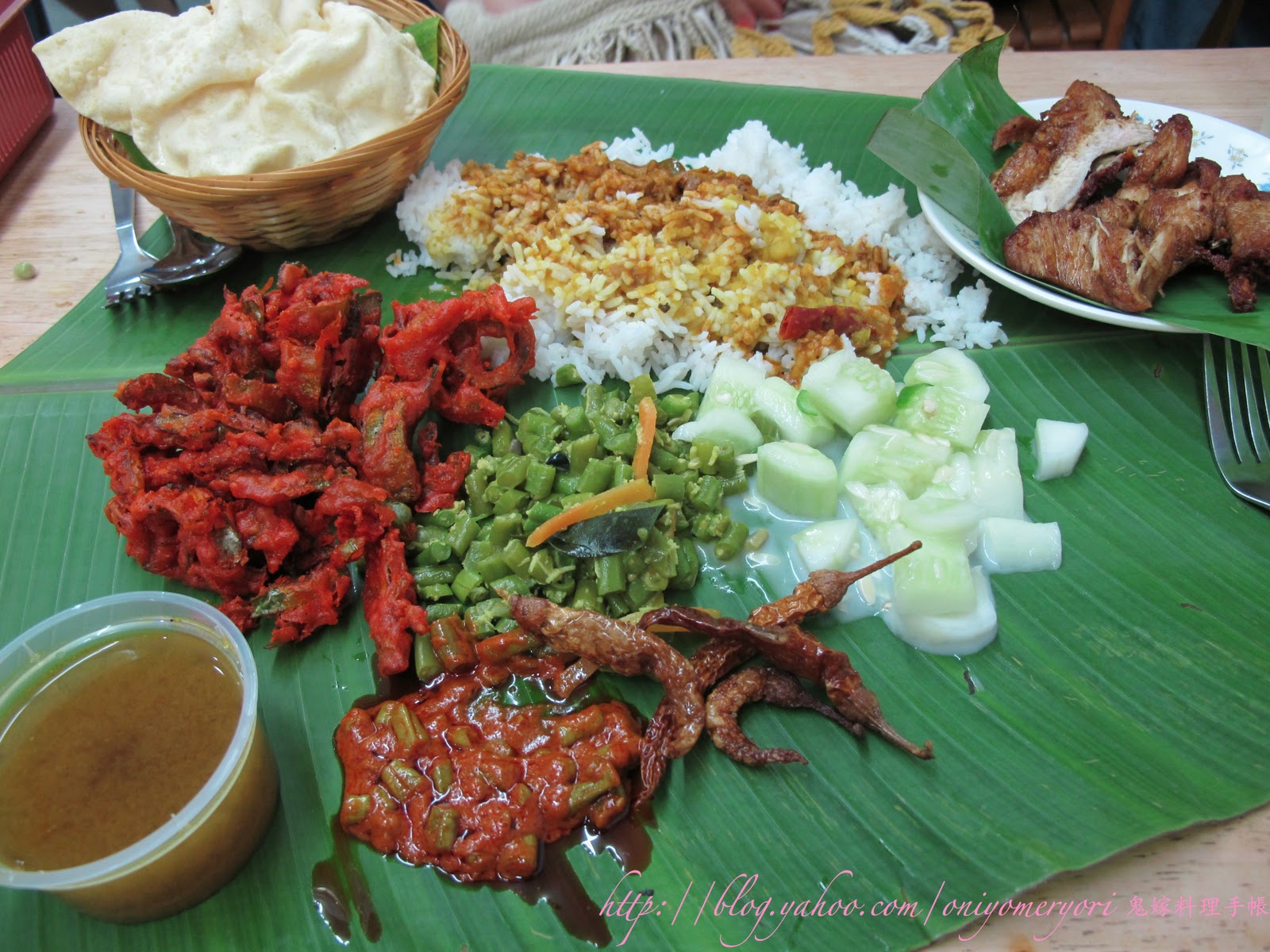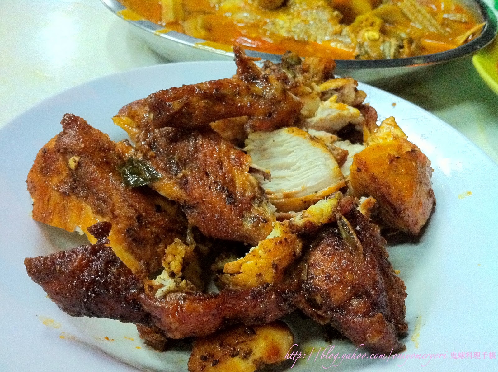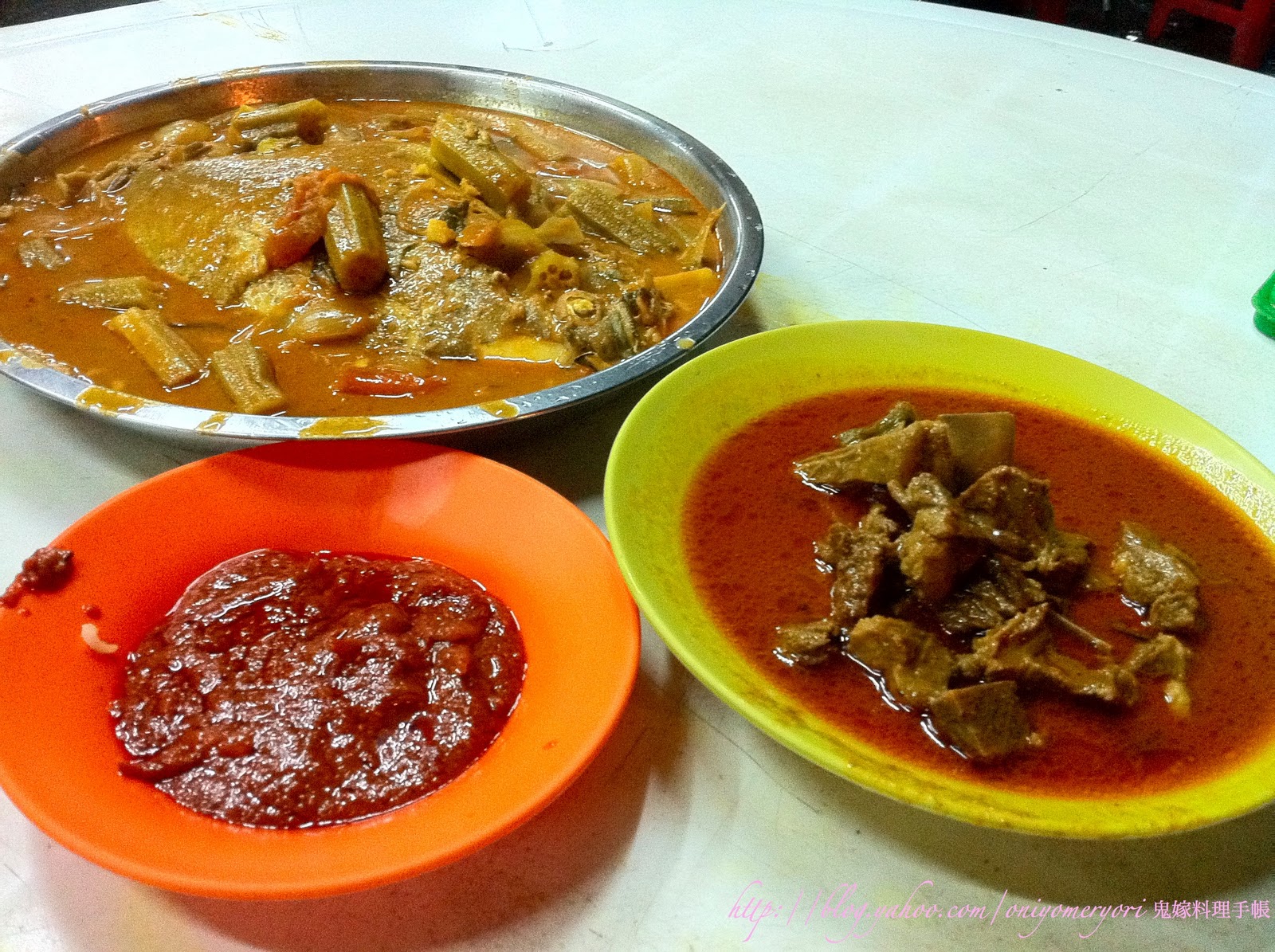 大馬友人帶我們去的,在工業區內 Peugeot 的 Service Center 對面,Jalan Dua 的附近,非常地道的街邊大排檔,是我們在KL最好吃的一餐,「咖哩黑倉魚」咖哩有層次,香味較辣味重,卻不會蓋過魚的鮮味,魚肉滑溜,吃得出是鮮魚,不是雪藏的;「咖哩羊肉」跟魚是不同的咖哩,比較香濃厚身,羊肉軟硬適中,比較香辣惹味;「烤雞」馬拉人很愛吃,不這我覺得比較乾。還有那個辣椒醬,超好吃!
