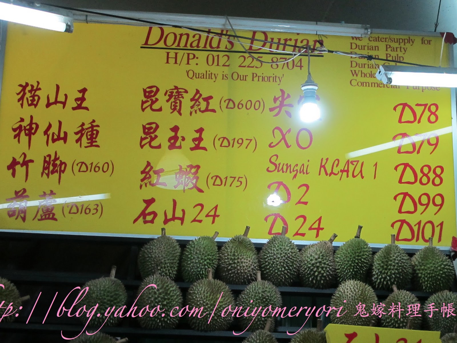 大馬友人帶我們去了位於SS2的榴槤街邊檔,有數家RM10任吃的榴槤檔,Donald’s Durian 好像比較出名,坐下來要了「貓山王」,我們是討厭榴槤的人,在香港只吃過一兩口,不愛它的質感,軟扒扒,好嘔心,但在香港開價100元兩件的「貓山王」,在這裡不用HKD100便有一整個,不吃好像對不起自己。勇敢地吃下第一口,怎說呢! 好特別,香氣濃郁,好creamy, 軟滑得來不會軟扒扒,味道香甜,但不是死甜,是甘甜,外層有點苦,但不是難吃的苦,正是那個苦,令味道更有層次,口感複雜,回甘的味道令人非常難望,十分過癮!更有點醉,像喝了酒那種醉,真慶幸我們來了,多謝友人帶路。