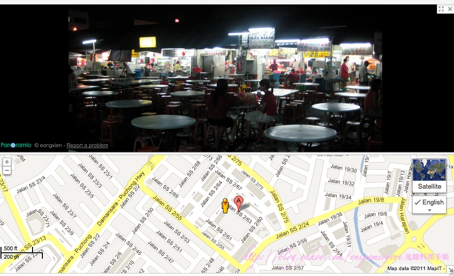 在SS2榴槤附近,晚上營業至深夜,食客多是住在附近的華人,廣東話及國語均通用,大馬友人介紹吃一個以荷葉包著來燒的魚肉捧,非常好吃,魚肉混和了各種香草,微辣,加上荷葉香,很有特色。還吃了蠔餅及炒通菜,味道正常,不是十分特別,住在附近的話,是個宵夜的好地方。