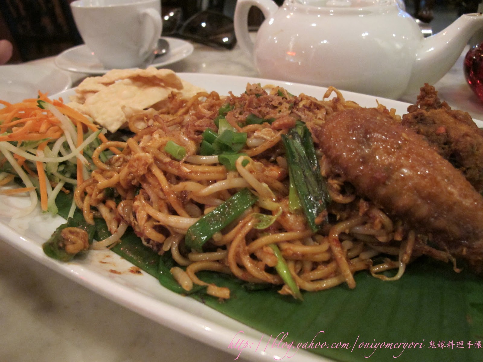 店內裝橫充滿著濃濃的中國味,酸枝傢俱、百子櫃、古老銀飾,布置彷如一間古董店,很有舊中國的味道,我們拍了不要照片。「娘惹炒麵」好吃,麵身彈牙,微辣,很有風味;「娘惹咖哩雞」,雞肉嫩滑,咖哩香辣,很合我的胃口;還有「招牌白咖啡」,一定要喝,香濃細滑,如果去Jamek清真寺及唐人街參觀的話,記得要來吃呀。