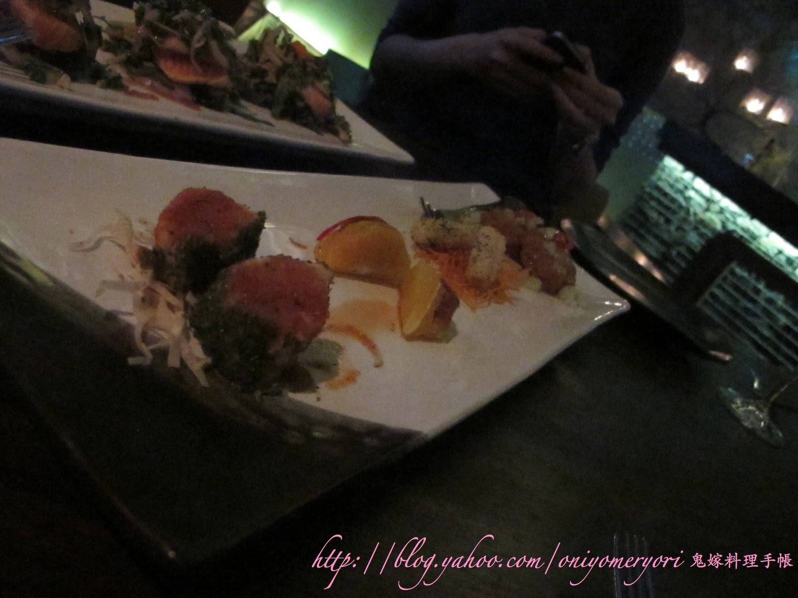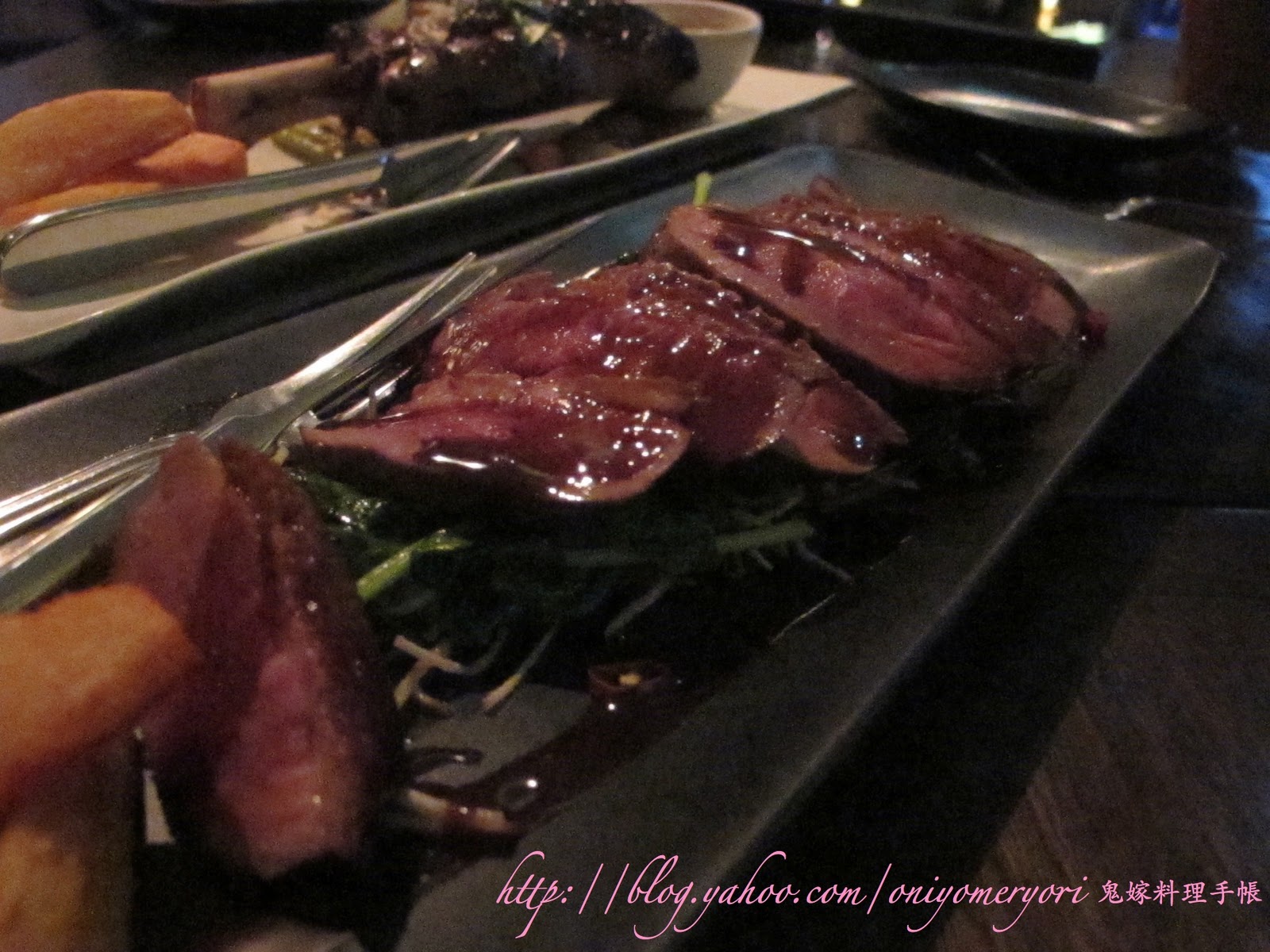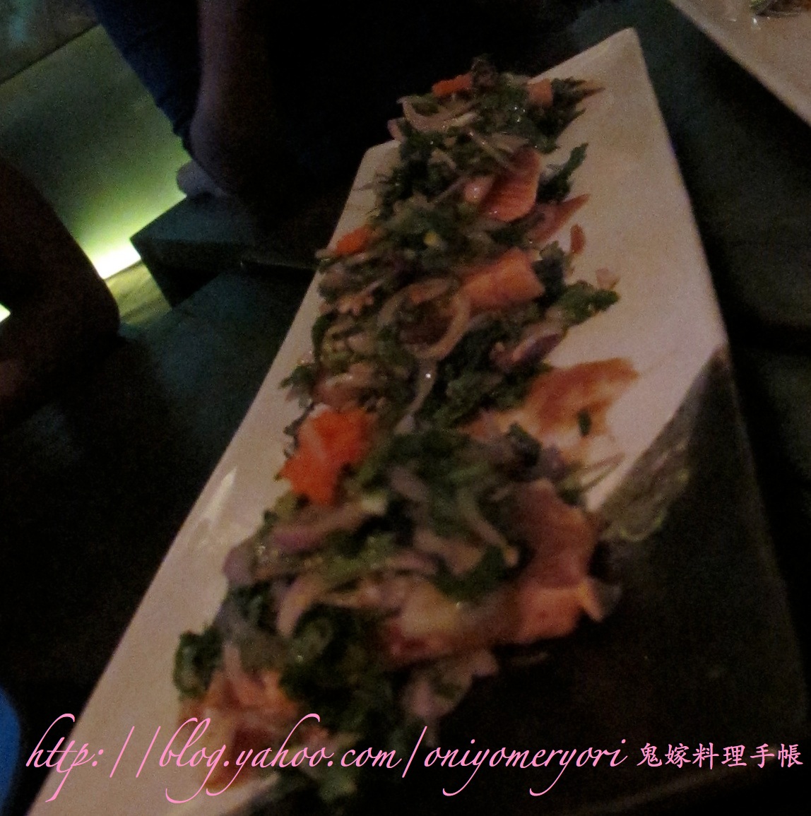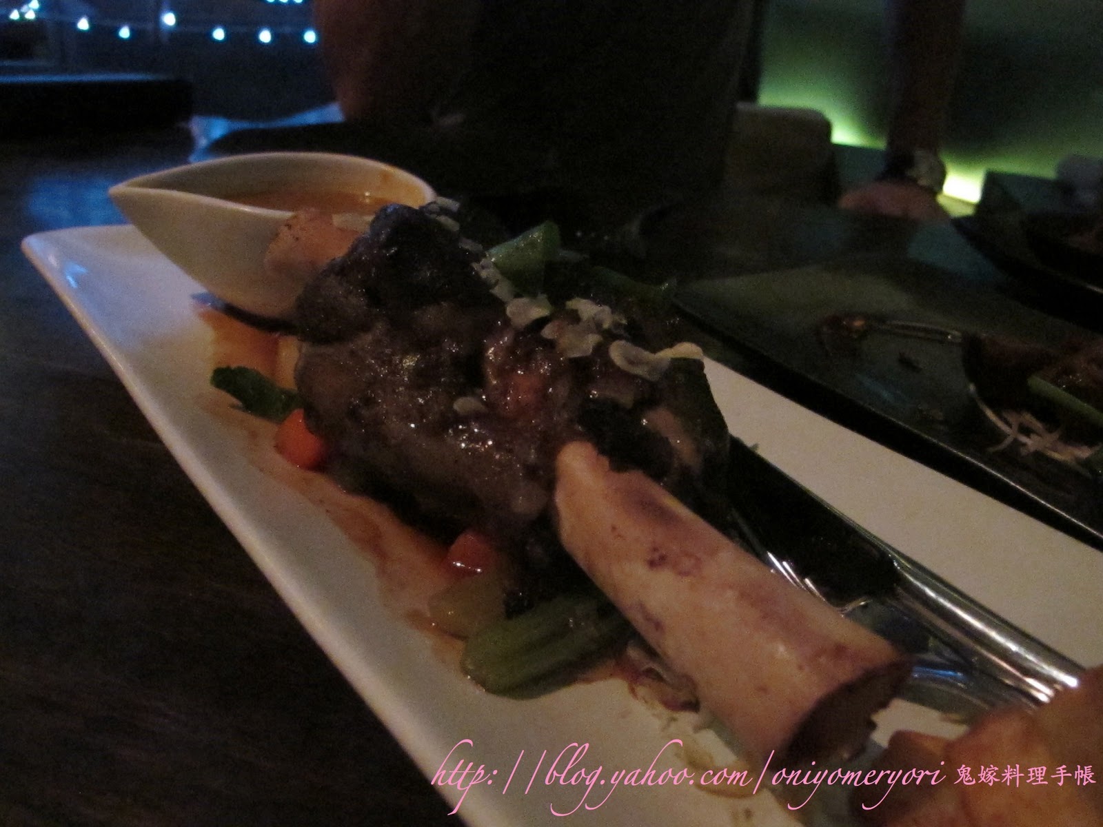 menu 上的各樣前菜都有一點,OK 不過沒有特別印象;「泰式醬汁三文魚」很好吃,有特色,香料跟三文魚配合得非常好;「咖哩炆焗羊膝」,羊膝很腍很入味,咖哩是另上的,點了咖哩的羊膝像泰菜,不點的話像西菜,很有趣,味道是不錯的,不過不算特別,香港也能吃到。「烤鴨胸」正常。總括來說,這是KL比較Hip的店,喝一杯是很好的選擇,吃飯便太貴了。 這店吃飯要訂位的,我們7時去到,沒有人,但9時已是 full house了。在這裡出了個笑話,我們看裝潢那麼潮,那麼hip,忍不住不停地拍照,侍應生卻走過來跟我們說,拍照是可以的,不過一定要有人在鏡頭內,不可只拍景。真好笑呢,雖是裝潢特別卻還不算是世界級吧!之後我們便做出誇張的表情裝作在拍人,其實是拍景!