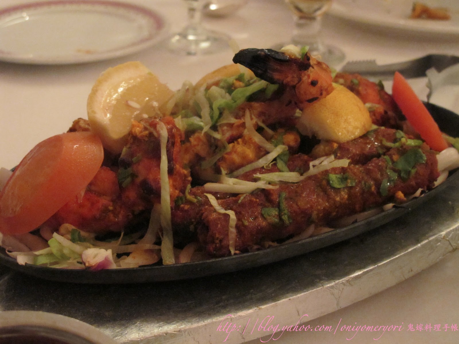 印度人是馬來西亞的第三大民族, 所以印度菜的質素很有保證,Bombay Palace 可說是全吉隆坡最有名的印度餐廳, 達官貴人都是它的坐上客,包括前美國總統克林頓及現任國務卿希拉莉。餐廳本身是一坐古色古香的歷史建築,位於諾大的花園當中,十分有氣派。餐廳坐落於使館區,在美國大使館對面,裝潢也貴氣,不過人均消費只是HKD150左右。先來了一客「雜錦燒烤拼盤」,有雞、羊、牛、蝦,大家吃得津津有味,火喉剛好,外脆內軟,肉汁豐富,十個推!再來一個「雞肉咖哩」,我們請侍應生推介了一個比較辣的,雞肉嫩滑,咖哩香濃入味,只是不夠辣,我覺得很不錯,相公卻覺得香料味不夠,說香港的Tandori 比較好吃。還點了「烤焗羊腿」,羊腿是起了肉的,很方便,味道辛辣刺激,很合我的胃口,不過略嫌有點乾。還吃了加入蒜茸及香蔥的nann,非常可口好味,加入了「乾果及番紅花的炒黃飯」也很好吃。這餐吃得很開心,價錢不貴,裝潢華麗(印度式),服務也好,很滿足的一餐,幸好我們有訂位,9時多已 full house,