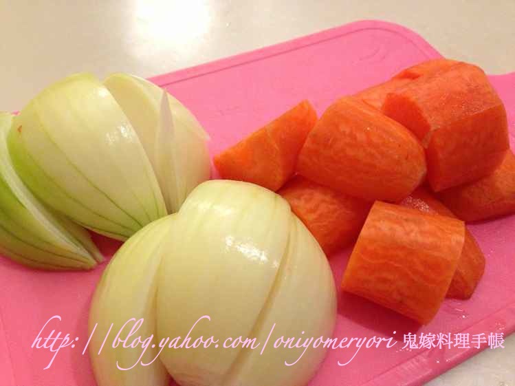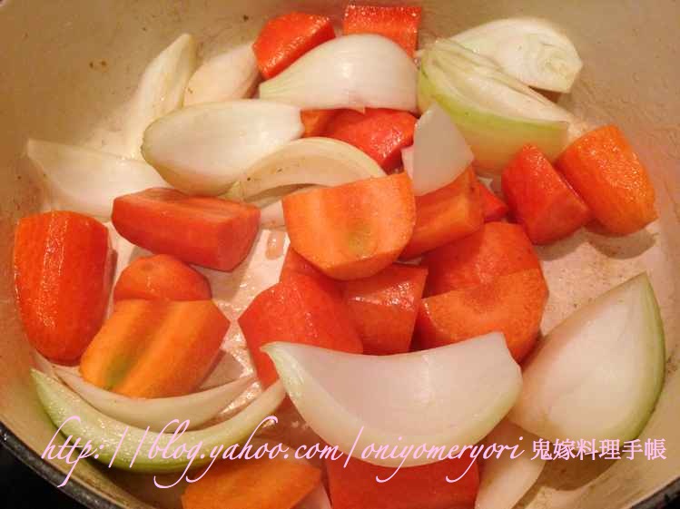 3) 盛起牛肉,原鍋略炒甘荀洋蔥3分鐘