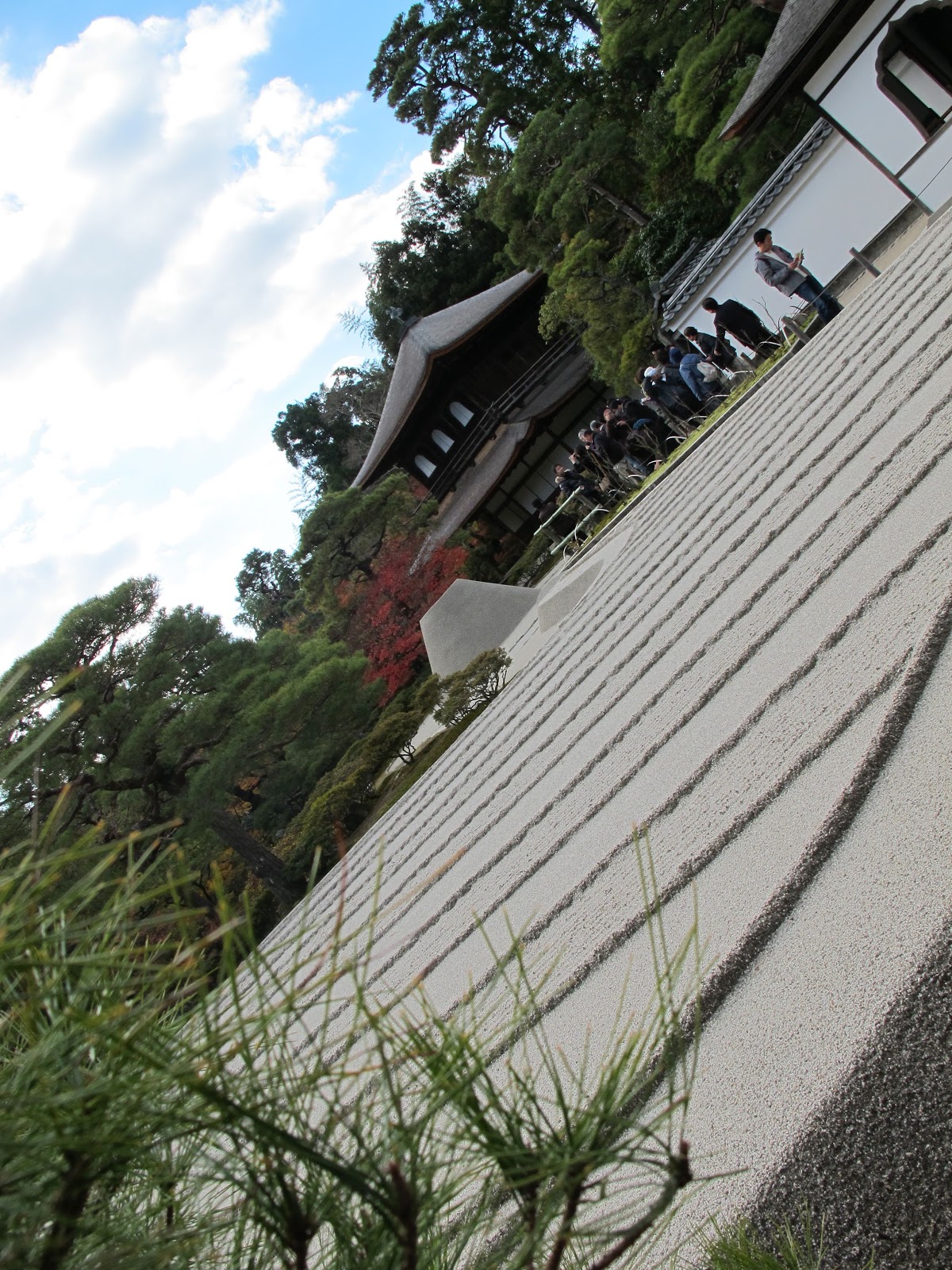 從酒店坐巴士到銀閣寺,在哲學之道下車,冬天時沒什看頭,但春天卻是櫻花名所,過百櫻花樹沿著小川盛開,壯觀非常。我跟相公都覺得銀閣寺的庭園設計比金閣寺漂亮優雅,銀沙灘(ぎんしゃだん – Ginsyadan)更是一絕。