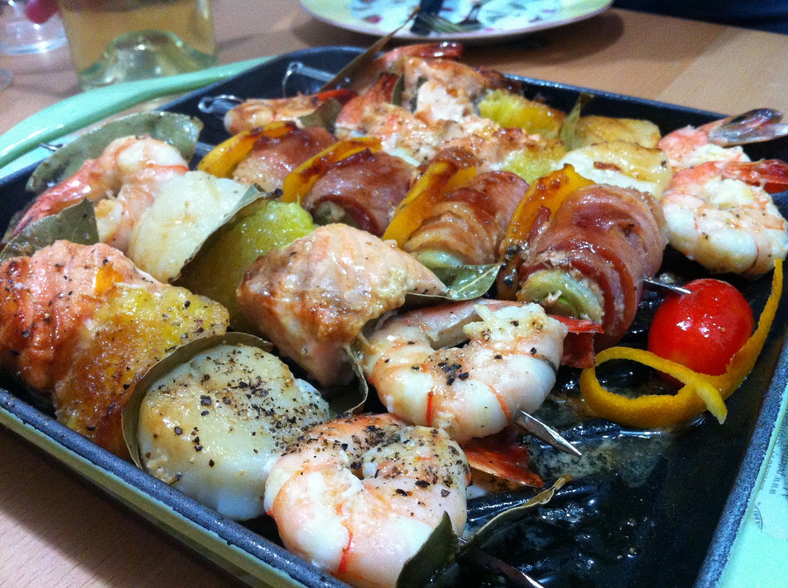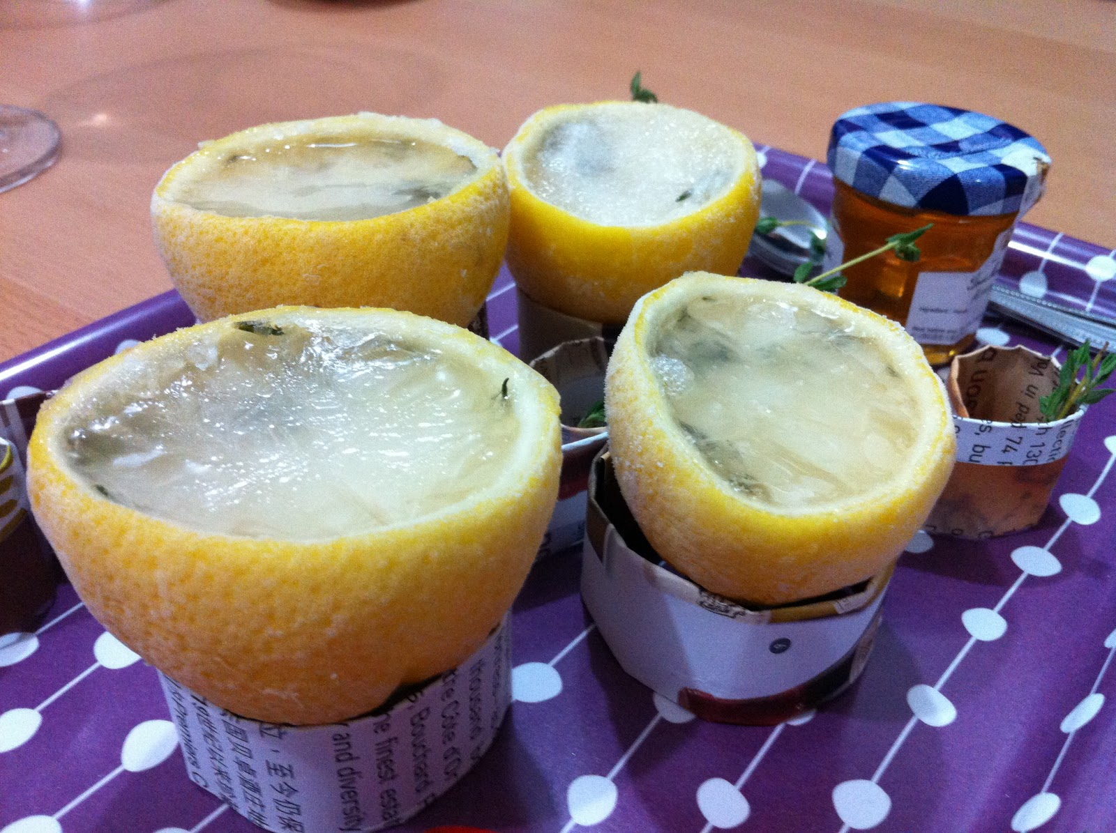 巴馬火腿、煎鴨肝、檸檬香草雪葩、大蝦帶子三文魚香橙