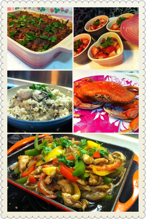 友人的巨蟹外,我再弄了Eggplant Lasagna, Oyster Rissotto, Chicken Fujita, Strawberry Milk Pudding