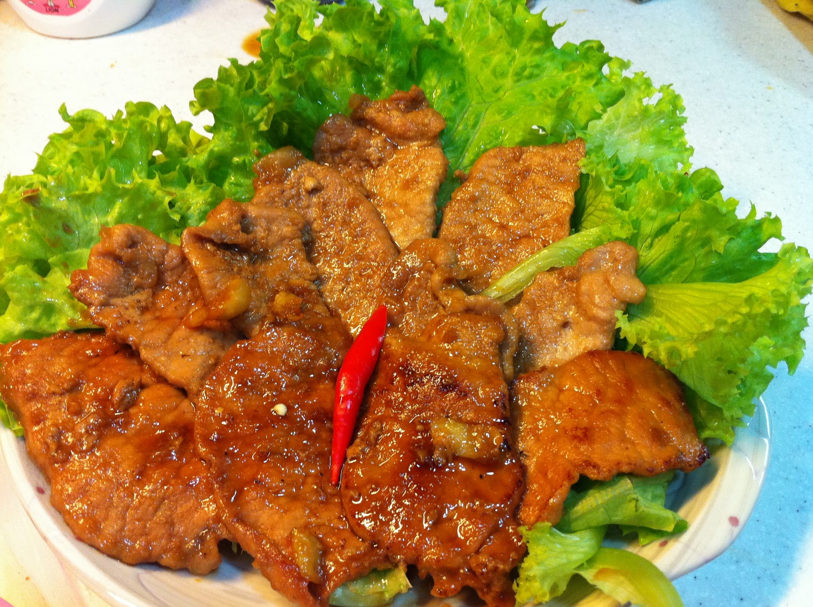 1)混和所有調味料,加豬肉薄片醃15分鐘